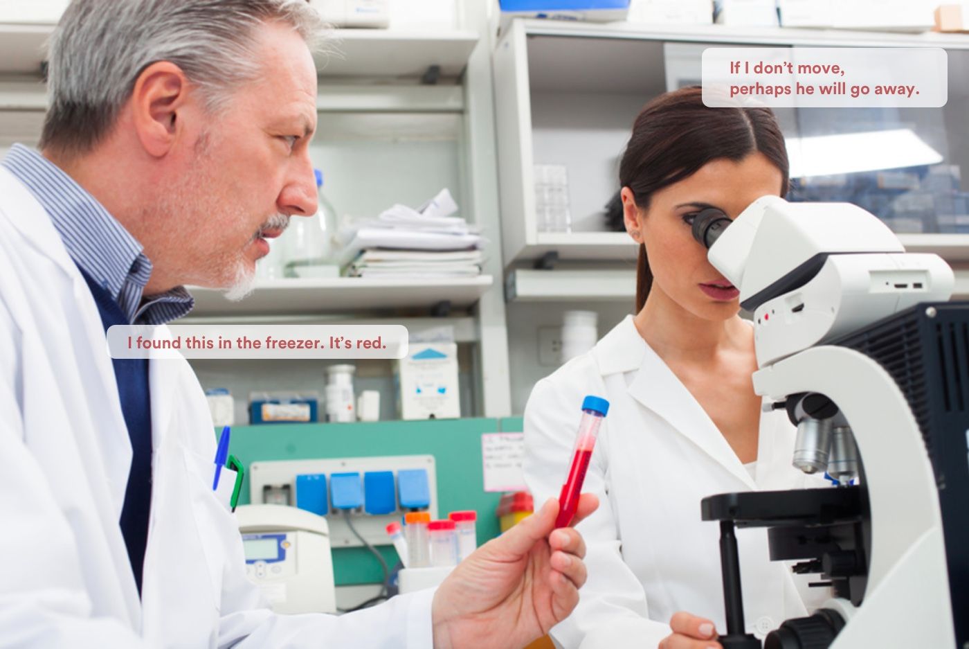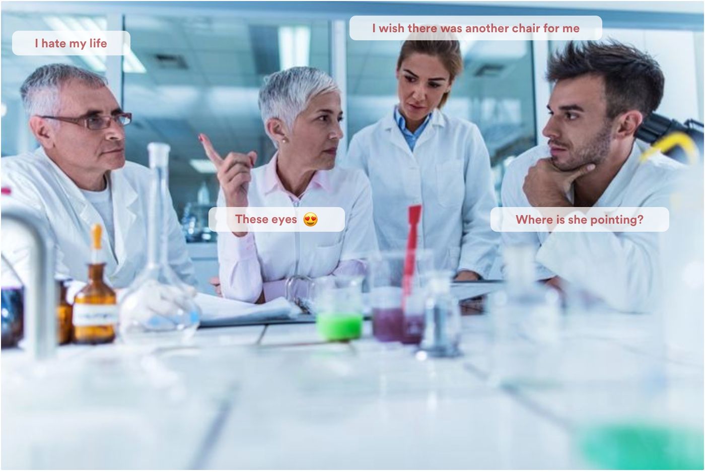 We’ve worked for quite some time on this post (it takes time to make scientists spin in 3D …). So we were indeed surprised as we saw the very same topic trending on Twitter under hashtag #BadStockPhotosOfMyJob right before we hit the “publish” button on this post.