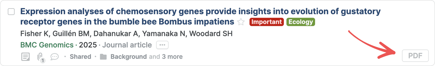 Open and read PDFs attached to your references directly from Paperpile. You can view PDFs in a new browser tab using your preferred PDF viewer.
