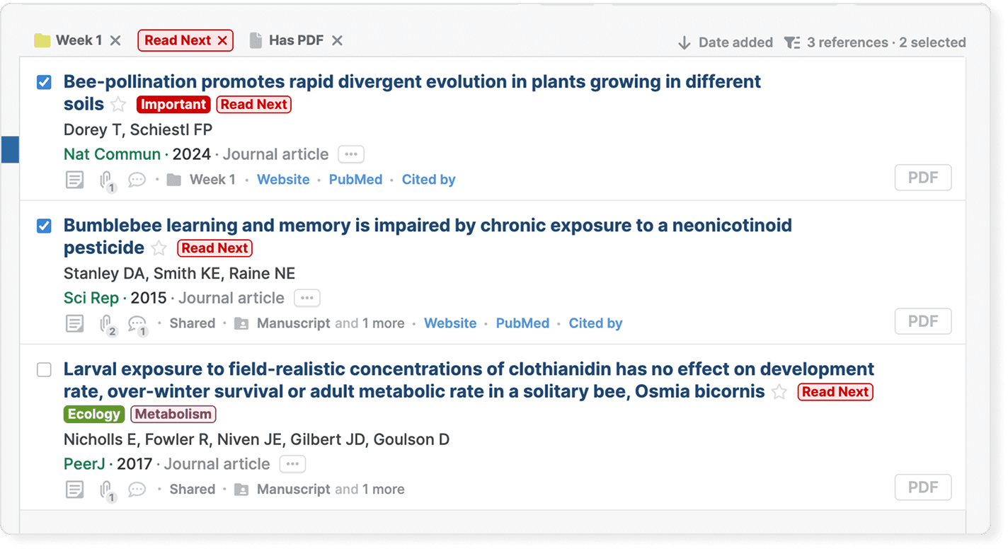 When you click a folder and then click a label, Paperpile shows only the references that are in both that folder and have that label. This helps you narrow down your view to find exactly what you need.